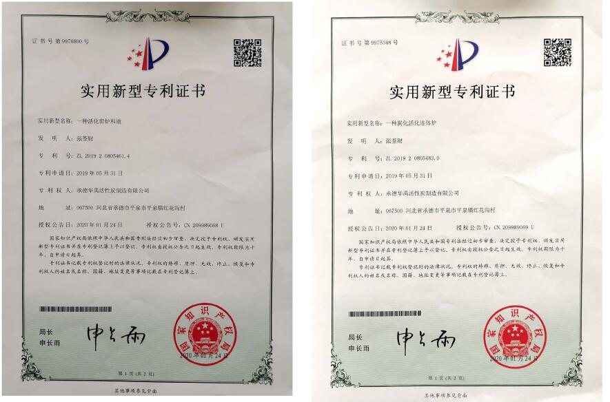 我公司工程師自1988年開(kāi)始接觸活性炭,距今已有30多年。我公司的工程師一直致力于研發(fā)提高活性炭生產(chǎn)技術(shù),逐步從燜燒爐到扒試爐,到立式爐,經(jīng)過(guò)多年的積累,成功于2020年申請(qǐng)2項(xiàng)國(guó)家實(shí)用新型專利,專利號(hào):ZL201920805461.4,ZL201920505483.0,在活性炭的生產(chǎn)技術(shù)上得到突破。